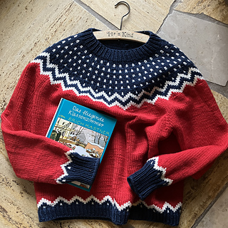 이 패턴은 «마녀 배달부 키키»를 쓴 어린이책 작가 카도노 에이코님께서 입으신 옷(인스타그램 이미지)에서 영감을 받았습니다. 섬세한 흑백 격자무늬 원피스에 초록색 카디건을 맞춰 입으신 모습이 정말 멋져 보였어요. 그 이미지에서부터 출발해서 아이슬란드 전통 스웨터 스타일의 배색 무늬를 뜨게 되었습니다. 그 무늬를 요크 스웨터 형태에 적용하면서 처음 머릿속에 떠올랐던 것과는 다른 형태로 변화를 거듭한 끝에 밤하늘 같기도 하고, 여름밤에 즐기는 폭죽놀이의 반짝이는 불꽃 같기도 한 요크를 완성했습니다.