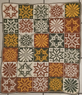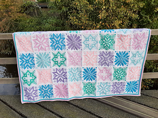 Elk blok heeft 20 toeren en eindigt met 39 steken (excl. hoeken) aan elke zijde.