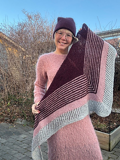 En mysig sjal som stickas med en tråd Rauma Alpakka Lin och en tråd Isager Trio 2. Garnblandningen är både mjuk och ger ett skönt fall. Funkar som halsduk på vintern och över klänningen på sommaren. Alpakka Lin kan ersättas med Nanna eller Sally från Permin.