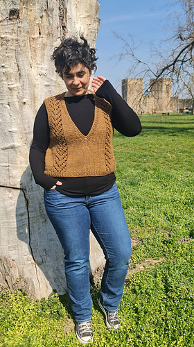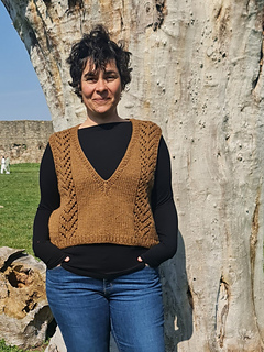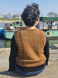 A well-designed vest is a timeless layer that works effortlessly from season to season. This vest is worked top-down with short-row shaping at the shoulders and features a deep V-neck and two chevron lace panels along the sides. Designed with simplicity in mind, it balances clean lines with a touch of texture for a relaxed, modern look.