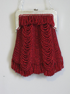 This lovely pattern is from the 10th Edition of the Hiawatha Book of Beaded Bags. The stated sizes for yarn, beads and needles are all proprietary, but good results can be had with a variety of weights and sizes, provided that the yarn is fine enough to go through the beads. The purse frame size may vary depending upon choices.