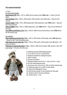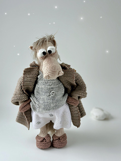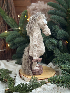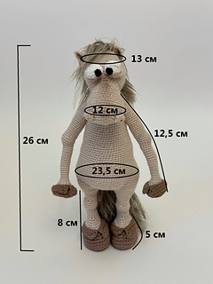 - Ladies and gentlemen, craft makers, and all who love to create magic! Allow me to introduce myself: I am Clip Clap Horse, also known as the Horse in a Coat! Believe me, I am in a whole different weight class and breed. My mane isn’t just made of wool; it’s an intricate hairstyle, crocheted from the high-quality yarn. But the true depth of my character comes through in the details of my outfit—the coat, the polka-dot pants, and the ripped T-shirt. So I’m not just a horse; I’m a multifaceted individual, crafted with passion, adding a touch of gentlemanliness to every stitch. Today, my creator and I will share the story of my birth and what you should focus on so that I turn out to be so aristocratic! She attempted to describe the crochet process for my body in great detail, explaining how to create a coat that fits perfectly over my strong back, my favorite gray polka-dot underwear, and a cozy, ripped tank top. Notably, everything is made with a crochet hook only. I have a craft wireframe within me, which allows my hooves to move and stay fixed in place. I can not only support myself but also hold lightweight objects. The crochet pattern consists of 44 pages and includes more than 110 photos. The height of the finished horse, using stated materials, is about 26 cm (10.2 inches).