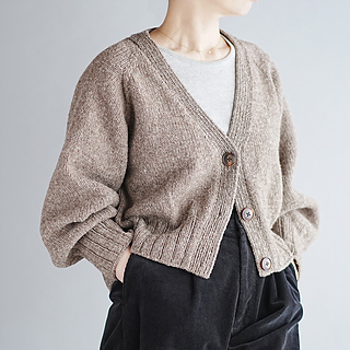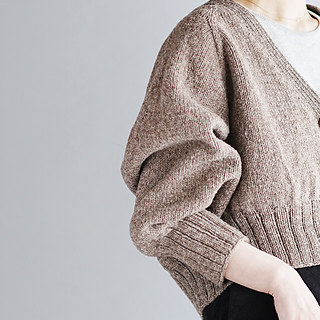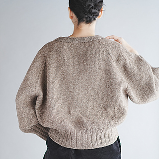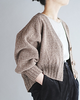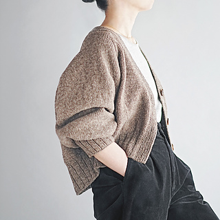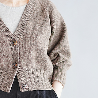 Type-V Cardiganは、トップダウンで編むVネックのカーディガンです。ゆったりとした身頃と袖、前後差をつけた後ろ身頃、深めのヨークとクロップド丈の組み合わせでリラックス感のあるシルエットに仕上がりました。Tシャツにも厚めのトップスにも重ねやすい一着です。