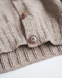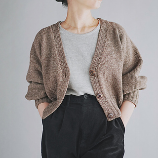 The project begins at the neck edge, where the back neck is shaped while forming the neckline. The yoke is worked with a modified raglan construction. After the sleeve separation, the body is worked flat to the ribbed hem, while the sleeves are worked in the round. Finally, stitches are picked up along the front edges to create a 1×1 rib button band, with buttonholes worked simultaneously.