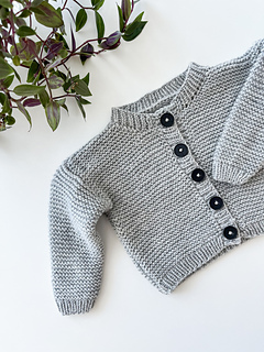 The Uku cardigan is a staple piece for your little one, offering your child a minimalistic yet stunning aesthetic. This cardigan showcases a very classic stitch pattern combined with simple construction. Babies in garter stitch garments never fail to captivate hearts with their undeniable cuteness.
