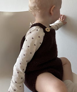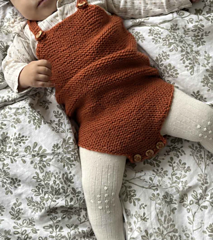 The Ultra Easy Baby Romper is perfect on top of a body and a pair of tights. It is worked in a garter stitch with simple techniques, which makes this romper a perfect project for the beginner.
