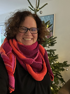 You can do an entire shawl or make single triangles and send everyhing to mamazone. They will join them into shawls, and they’ll give these shawls to women undergoing treatment.