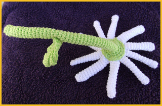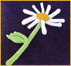 C’est une petite fleur crochetée en différentes parties cousues entre elles. Une très petite quantité de fil suffit.