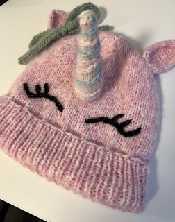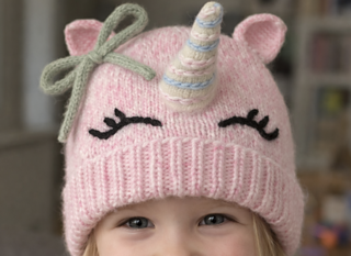 The Unicorn Hat is a playful and cozy beanie designed to bring a little magic to everyday wear. Featuring a soft folded brim, embroidered sleepy eyes, and charming unicorn details, including a stuffed horn, textured ears, and optional i-cord bow, this hat is as fun to make as it is to wear.