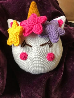 This is a pattern for a Unicorn Pillow. It measures 9” tall (not including the horn) and 9” wide.