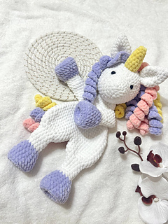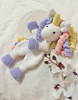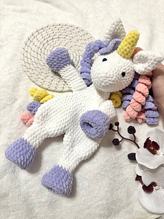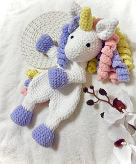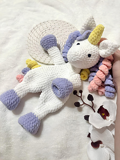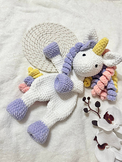 A very easy crocheted unicorn comforter. This toy is perfect for babies and toddlers. There are a lot of photos in the pattern that will simplify the crochet process :)
