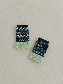 ひつじが暮らす草原に咲いていそうなすずらんと野花をイメージしながらデザインしたハンドウォーマーです。