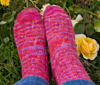 These socks are worked toe up and feature a rounded wedge toe with heel flap and gusset.