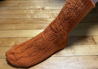 The ebb and flow of stitches in this sock reminded me of the snakes and ladders game I played as a child. Rolling the dice and hoping to land on a ladder rather than a snake.