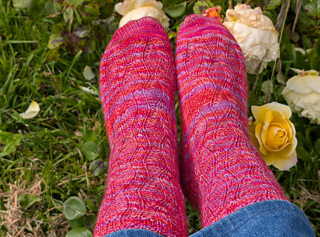 The socks are a simple knit, with cleverly placed increases and decreases giving a lovely textured and stretchy finish to the socks.