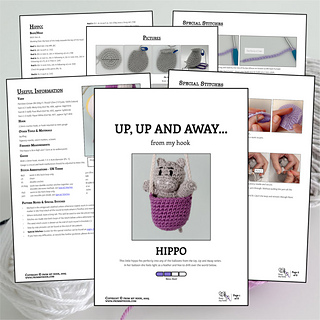 The hippo pattern is part of the ‘Up, Up and Away’ collection. On its own it will allow you to create a quick and easy, adorable crochet hippo. Combine with the other patterns in the collection to let your hippos fly high in their own hot air balloons or create a stunning and personalised mobile. The Up, Up and Away series is a wonderful way of creating unique and beautiful gifts for loved ones. The full mobile with balloons and characters is a fantastic (and very special) baby shower/newborn gift, and the balloons on their own can appeal to people of all ages as they can be personalised, with your choice of colours and character, to fit the home decor and personality of all.