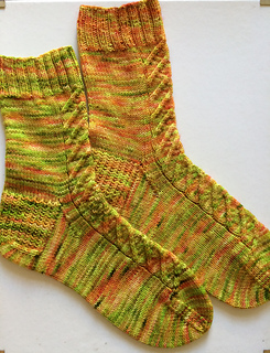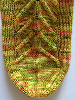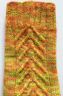 These socks are knit cuff-down but they can be easily adapted to be knit toe-up. Just make sure that you place the cable panel central across the instep and leg of your sock. If you want to have the arrows pointing in the same direction, you will also have to switch the cable instructions.