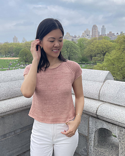 Introducing the Uptown Tee: an effortlessly sophisticated raglan tee with darling lace cap sleeves and polished I-cord finishing. The Uptown Pullover is also available.
