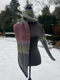 V Scarf is V Socks’ little brother, have fun with your leftover mohair or singles to create your own unique stripes. Knitted first flat, then in the round, and finally flat again. The colorwork is done entirely with slipped stitches.