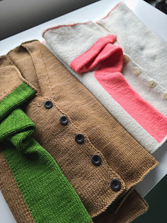 左右それぞれ前身頃と後身頃を往復編みで脇下まで
