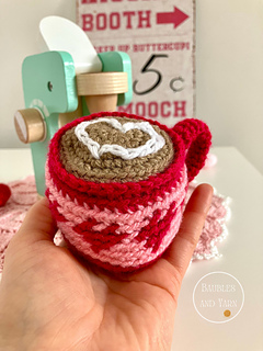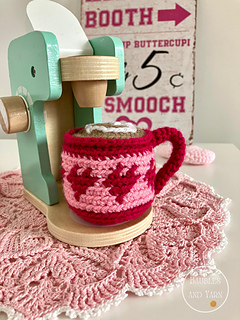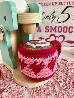 The pattern contains steps-by-steps instructions to crochet an adorable Valentine mug that is perfect for a festive play kitchen. The pattern also contains pictures to help you along the way.