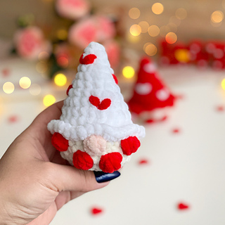 Create an adorable Valentine Gnome with hearts using plush yarn
