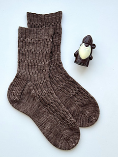The Valinor Socks are worked from the cuff down, featuring a textured pattern based on 2×2 ribbing. The structure keeps its shape well and adds a clean, subtle look that fits almost any style. The heel is reinforced and the toe is shaped with smooth wedge decreases.