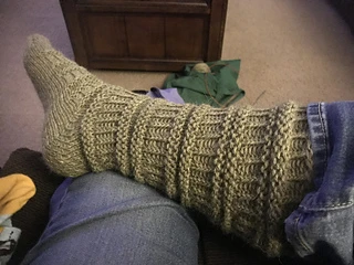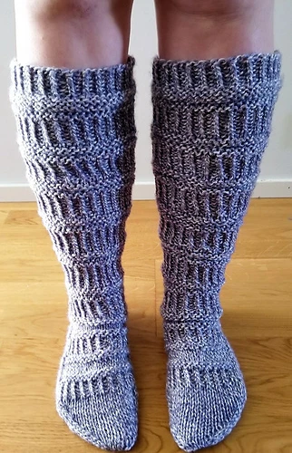 4 rounds of the pattern repeat is knitted with smaller needles to create a 3D effect on the leg.