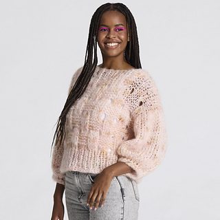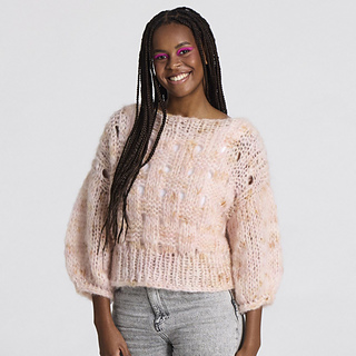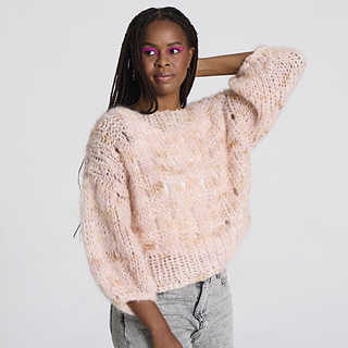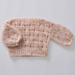 Vanilla is a lovely chunky sweater with a boat neck, drop down shoulders, and a delicate basket weave pattern on the body. The sweater is soft and chunky yet still light, and it is knitted top down using 2 strands of Handdyed Fat Mohair.