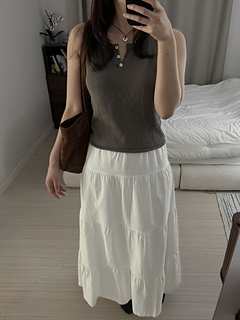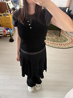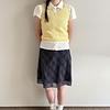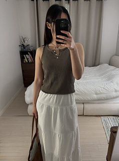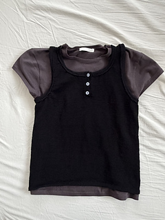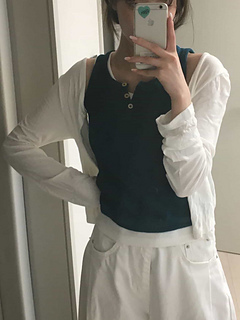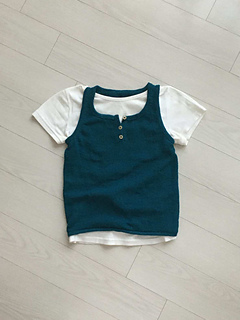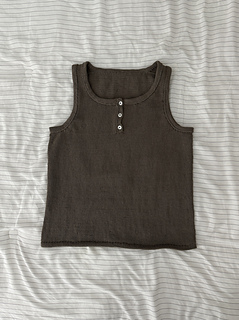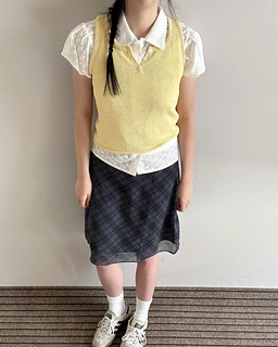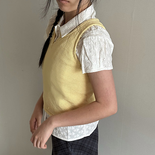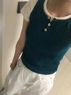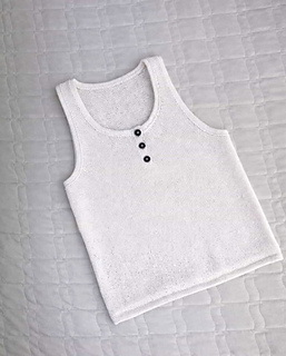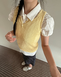 The back panel is worked flat first to the armhole. Stitches are then picked up from the back shoulder to continue working the front panel flat. After completing the button band on the front panel, the work is joined in the round and the body is worked downward.