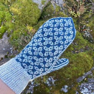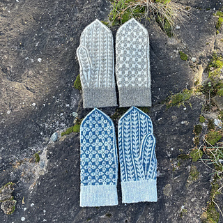 This is a pair of mittens in a thinner yarn. It’s perfect in the beginning of autumn when it’s a bit cold in the morning and you want something to warm your hands, but you are not quite ready to use your thicker mittens yet. It could also be used under another pair of mittens.