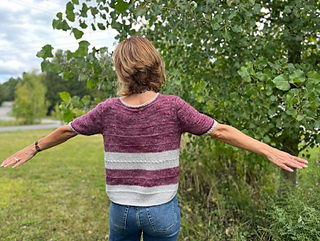 Le devant et le dos sont tricotés séparément, à plat, puis assemblés aux épaules pour une structure stable et précise. Les manches sont ensuite relevées et tricotées en rond, comme dans la version circulaire, afin de conserver le même tombé et la même finesse de finition.