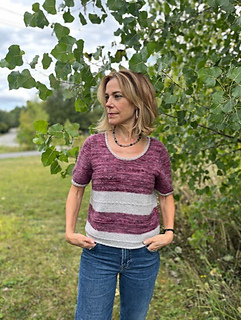 Le modèle Vasiliki est un modèle de chandail où les contrastes de couleurs dialoguent avec la texture.