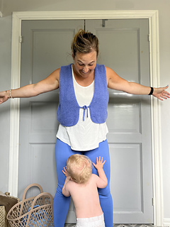 Styckena sammanförs och bålen stickas fram och tillbaka. Det stickas i-cordkanter kring framstyckena och nederkanten samt till knytband. Även ärmhålen kan kantas med i-cord. Västen är ganska vid i ärmhålen för att kunna passa under även de mest vidärmade klänningar, men vill du minska storleken på ärmhålen en aning så väljer du istället att göra en resårkant.
