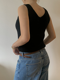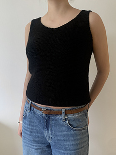 Our Vega Top is made with Drops Lima a soft blend of wool and alpaca. The top is light but warm and pars well over a shirt. It has a regular to lose fit with tick straps and a round neckline.