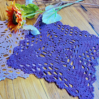 Veil of Avelisse doily pattern is a versatile design. The pattern comes with instructions on how to join to create either a table runner/scarf or a tablecloth.