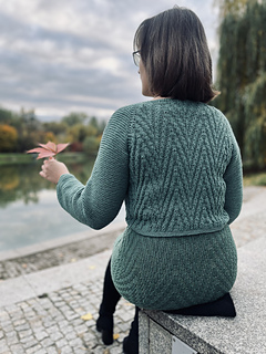 Żakiet jest robiony od góry do dołu. Rękawy można zrobić na okrągło, albo na płasko pracując tam i z powrotem, na końcu zszywając je. Obie wersje opisane są we wzorze.
