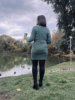 The advantage of using a structured pattern is that the fabric stretches, giving the jacket a very fitted look. As you work it, it can feel much too small!