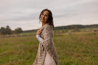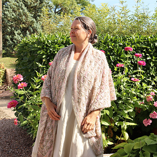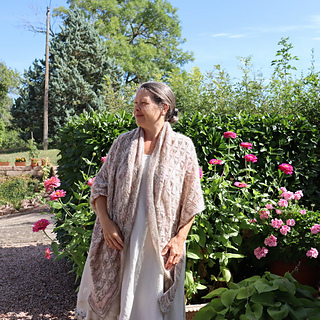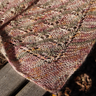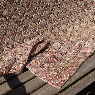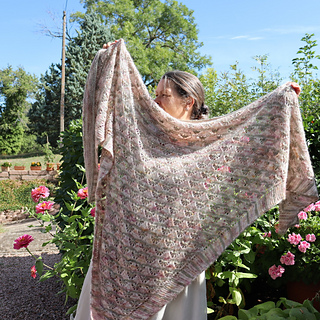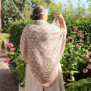 Das Verblümt Tuch wird von der unteren Spitze aus gestrickt. Mittels der einprägsamen Zunahmen kann das Tuch so groß gestrickt werden, wie die Wolle reicht.