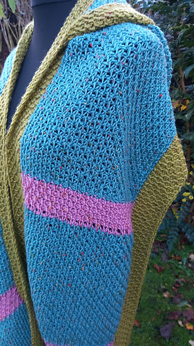Immerse yourself in the soothing rhythm of Tunisian crochet with the Verdant Hooded Shawl. Designed to showcase bold colour transitions while keeping the stitches approachable, this piece blends simplicity with striking visual impact. The main body is worked from the bottom up in airy Tunisian net stitch, creating a lightweight yet expressive fabric. A honeycomb-stitch border frames the shawl and helps prevent curling, adding both structure and texture. The hood is worked from one side edge in matching honeycomb stitch, then folded and seamed along the top for a clean, elegant finish.