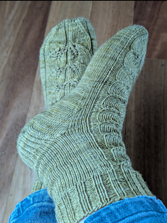 They are worked toe up featuring a rounded wedge toe with heel flap and gusset.