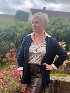 The name Versa comes from the word “versatile”, conveying the idea that this cardigan can be worn in many different ways, length, and with or without the tie belt.