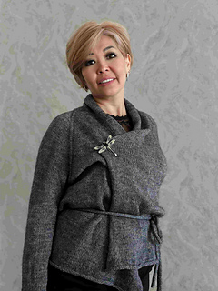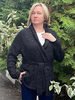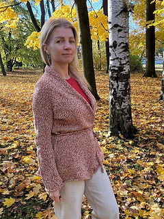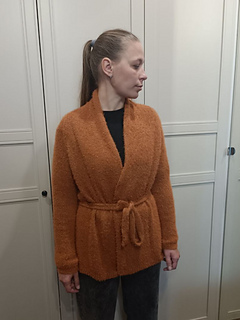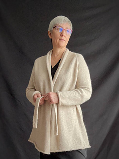 Finally, work the sleeves and the tie belt (wide in hollow rib and/or narrow in stockinette stitch).
