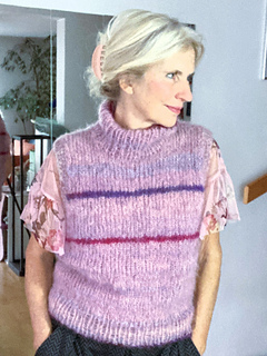 Der VERTINA Slipover wird von oben nach unten gestrickt. Er ist nur wenig oversized geschnitten, Für die Armausschnitte werden Maschen zugenommen.