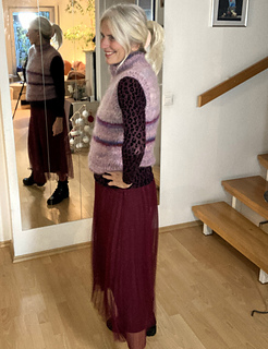 Super angenehm, wegen der weichen Qualität des gewählten Garnes, ist es ein sehr praktisches Teil für die Übergangszeit oder Indoor getragen, dass gut der eigenen Garderobe und dem Tragegefühl in Länge und Weite angepasst werden kann.