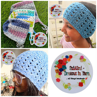 Featured pictures, the light variant was made with a 5mm hook and fits a teen/adult small.