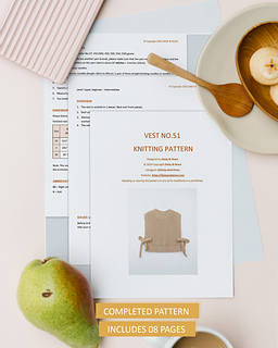 GAUGE: (Approximate) 20 stitches and 35 rows = 4x4” 10x10 cm in Shaker’s Rib stitch.