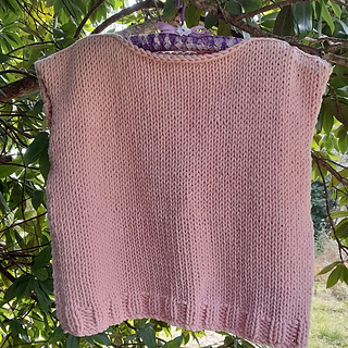 Vest Tops is worked flat from bottom up using straight or circular knitting needles. The front and back are rectangular pieces seamed together at the sides and top, allowing you to customise how large or small you want the arm holes and boatneck to be. You can also customise the colours for the front and back for two looks in one, use a different colour for the ribbing and neckbands, or try some colour blocks or stripes!