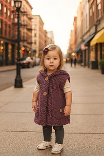 Knit a charming and practical vest for your little one with this chunky-style hooded vest knitting pattern, written for child sizes 2–4Y, 4–6Y, 6–8Y, and 8–10Y. This beginner/intermediate-friendly pattern is worked flat and features cozy stockinette panels trimmed in classic moss stitch for texture and structure.