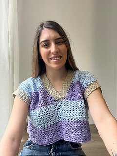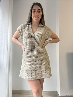El patrón contiene un vestido y un top tejidos con la misma construcción, para ambas prendas tendrás guía para las tallas: XS, S, M y L. Según la prenda que quieras hacer estas son los gramajes utilizados: